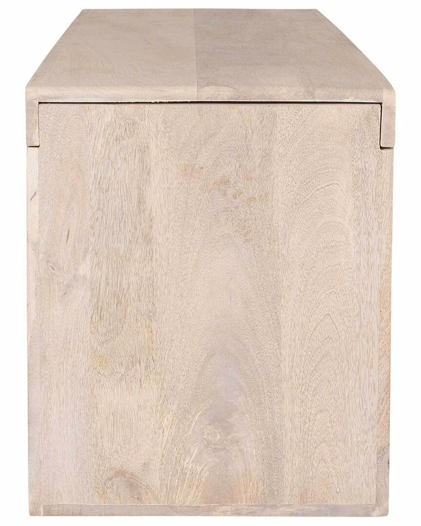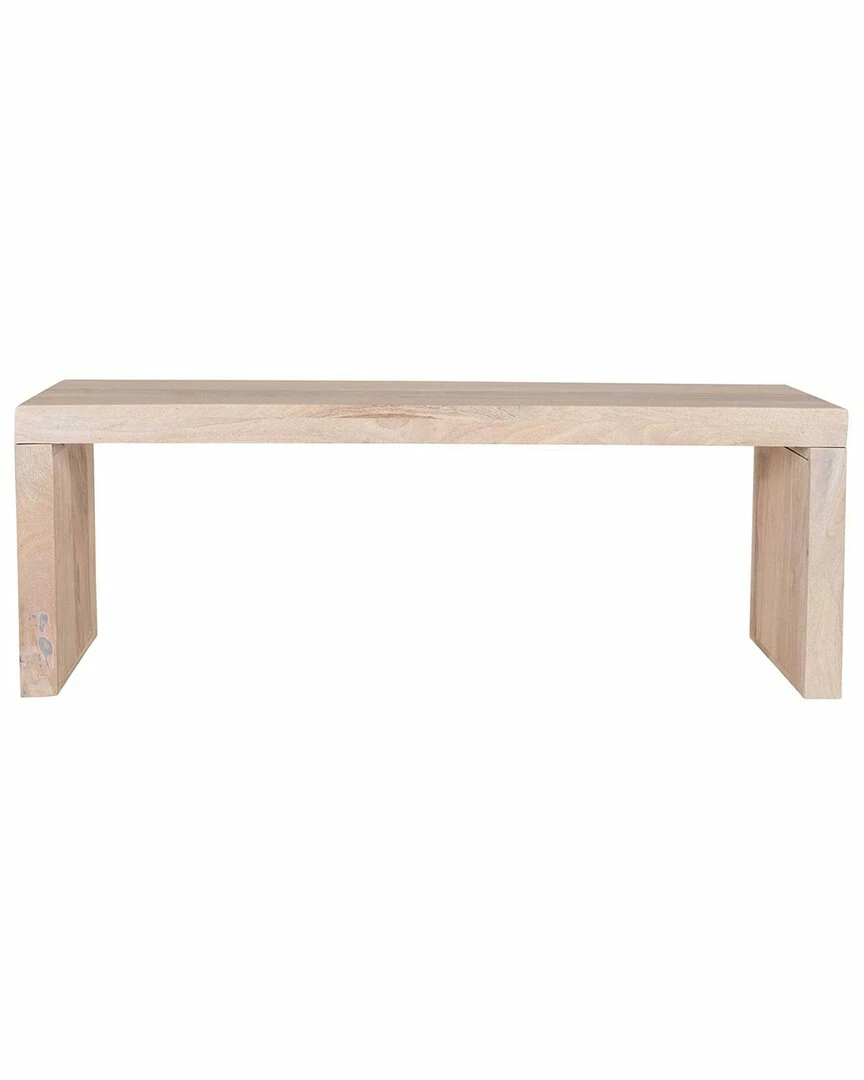 - Crafted from solid mango wood, the bench has a contemporary and minimalist feel with its clean lines and smooth sanded white finish. Sturdy, yet stylish this special piece will effortlessly blend into almost any area of your home while providing excellent functional use.